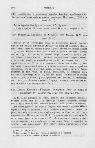 Ведомость о состоянии корабля Лансдоу, прибывшего из Англии к Ревелю под командой капитана Неильсона, 1713 года июня 21 // Каб. дел. отд. II № 17.