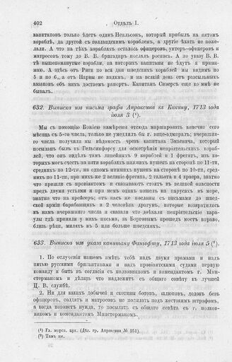 Выписка из письма графа Апраксина к Кикину, 1713 года июля 3 // Гл. морск. арх. (Дел. гр. Апраксина № 251).