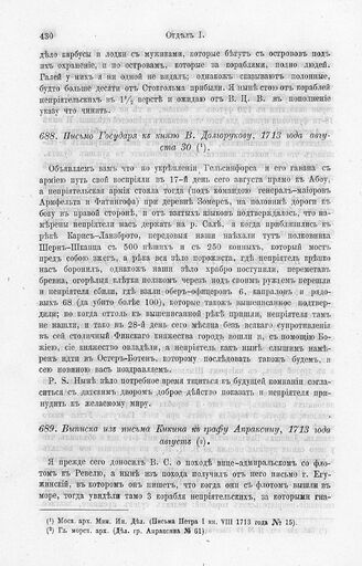 Выписка из письма Кикина к графу Апраксину, 1713 года август // Гл. морск. арх. (Дел. гр. Апраксина № 61).