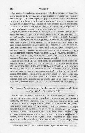 Моск. арх. Мин. Ин. Дел. (Копии с писем Государя к Апраксину).