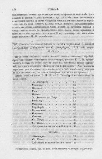 Выписка из письма барона де Би к Генеральным Штатам Соединенных Нидерланд из С. Петербурга, 1714. года апреля 10