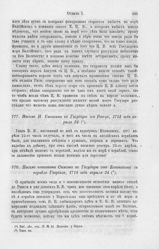 Письмо Н. Синявина к Государю из Ревеля, 1714 года апреля 24 // Каб. дел. отд. II № 21.
