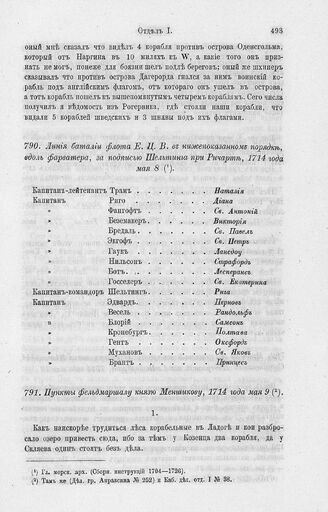 Пункты фельдмаршалу князю Меншикову, 1714 года мая 9 // Гл. морск. арх. (Дел. гр. Апраксина № 252); Каб. дел. отд. I № 38.