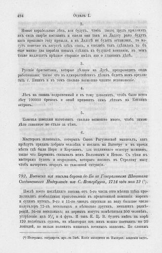 Выписка из письма барона де Би к Генеральным Штатам Соединенных Нидерланд из С. Петербурга, 1714 года мая 12 // Нидерланд. государств. арх. в Гаге. Копия находится в Императ. академии наук.