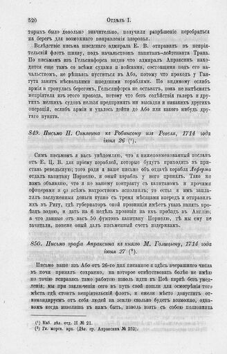 Письмо Н. Синявина к Робинсону из Ревеля, 1714 года июня 26 // Каб. дел. отд. II № 21.