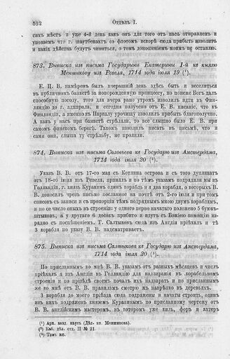 Выписка из письма Государыни Екатерины I-й к князю Меншикову из Ревеля, 1714 года июля 19 // Арх. акад. наук (Дел. кн. Меншикова).