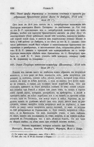 Указ графу Апраксину о доставке сведения о проводе разобранных бригантин рекой Лугою до Ямбурга, 1714 года июля 28