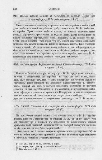 Письмо графа Апраксина к князю Ромодановскому, 1714 года августа 15 // Гл. морск. арх. (Дел. гр. Апраксина № 252).