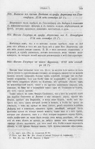 Выписка из письма Воейкова к графу Апраксину из Гельсинфорса, 1714 года сентября 12 // Гл. морск. арх. (Дел. гр. Апраксина № 88).