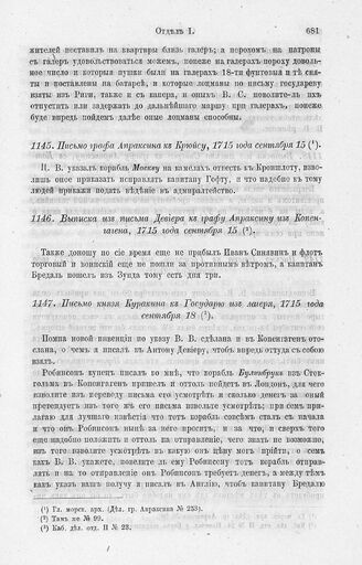 Выписка из письма Девиера к графу Апраксину из Копенгагена, 1715 года сентября 15 // Гл. морск. арх. (Дел. гр. Апраксина № 99).