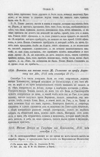 Выписка из письма князя М. Голицына к графу Апраксину из Або, 1715 года сентября 27 // Гл. морск. арх. (Дел. гр. Апраксина № 94).