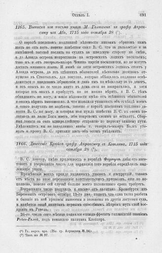 Выписка из письма князя М. Голицына к графу Апраксину из Або, 1715 года октября 28 // Гл. морск. арх. (Дел. гр. Апраксина № 94).