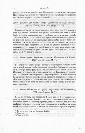 Выписка из письма графа Апраксина к князю Меншикову из Ревеля, 1716 года февраля 9 // Гл. морск. арх. (Дел. гр. Апраксина № 254).