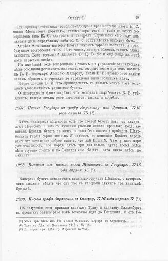 Выписка из письма князя Меншикова к Государю, 1716 года апреля 15 // Моск. арх. Мин. Ин. Дел. (Дел. кн. Меншикова 1716 г. № 10).