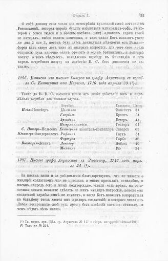 Выписка из письма Сиверса к графу Апраксину с корабля С. Екатерина от Наргена, 1716 года апреля 20 // Гл. морск. арх. (Дел. гр. Апраксина № 117); Гл. морск. арх. (Сборн. инструкцій 1704—1726).