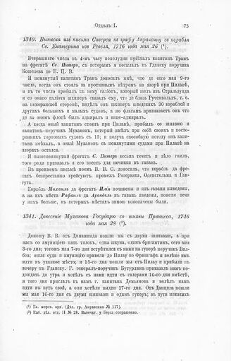 Выписка из письма Сиверса к графу Апраксину с корабля Св. Екатерина из Ревеля, 1716 года мая 26 // Гл. морск. арх. (Дел. гр. Апраксина № 117).