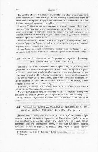 Письмо Н. Синявина к Государю с корабля Девоншир от Копенгагена, 1716 года июня 2 // Каб. дел. отд. II № 28.