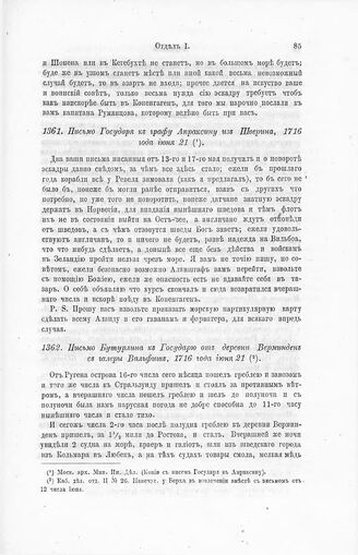 Письмо Государя к графу Апраксину из Шверина, 1716 года июня 21 // Моск. арх. Мин. Ин. Дел. (Копии с писем Государя к Апраксину).