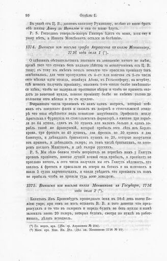 Выписка из письма графа Апраксина к князю Меншикову, 1716 года июля 1 // Гл. морск. арх. (Дел. гр. Апраксина № 254).