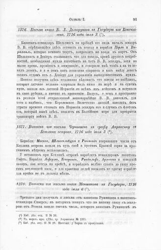 Выписка из письма, князя Меншикова к Государю, 1716, года июля 6 // Каб. дел. отд. II № 28.