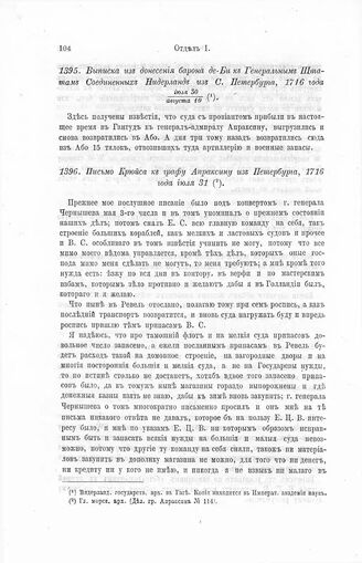Выписка из донесения барона де Би к Генеральным Штатам Соединенных Нидерланд из С. Петербурга, 1716 года июля 30/августа 10 // Нидерланд. государств. арх. в Гаге. Копия находится в Императ. академии наук.