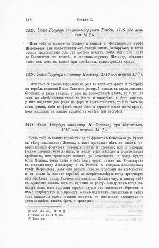 Указ Государя капитану Н. Синявину при Борнгольме, 1716 года августа 13 // Каб. дел. отд. I № 38.