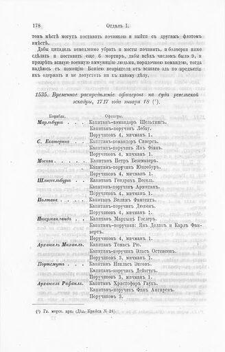 Временное распределение офицеров на суда ревельской эскадры, 1717 года января 18 // Гл. морск. арх. (Дел. Крюйса № 24).