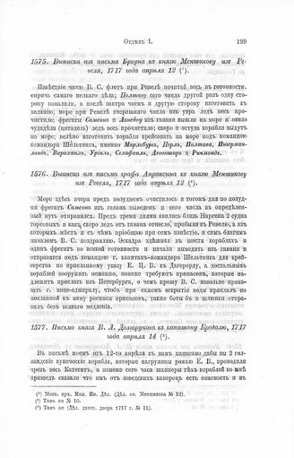 Выписка из письма графа Апраксина к князю Меншикову из Ревеля, 1717 года апреля 12 // Моск. арх. Мин. Ин. Дел. (Дел. кн. Мепшикова № 10).