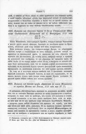 Выписка из письма графа Апраксина к князю Меншикову с корабля Москва из Ревеля, 1717 года мая 27 // Моск. арх. Мин. Ин. Дел. (Дел. кн. Меншикова № 10).