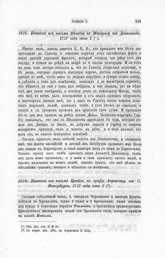 Выписка из письма Крюйса к графу Апраксину из С. Петербурга, 1717 года июня 3 // Гл. морск. арх. (Дел. гр. Апраксина № 153).