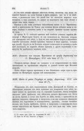 Выписка из письма Чернышева к графу Апраксину из С. Петербурга, 1717 года июня 17 // Гл. морск. арх. (Дел. гр. Апраксина № 145).