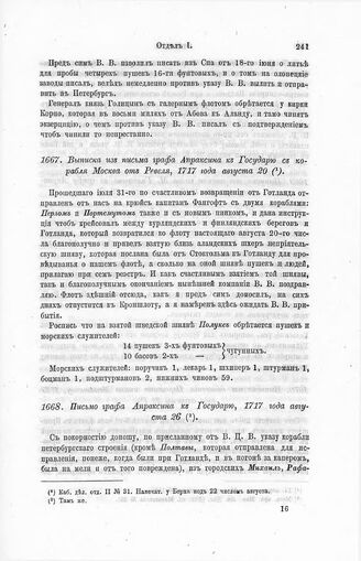 Выписка из письма графа Апраксина к Государю с корабля Москва от Ревеля, 1717 года августа 20 // Каб. дел. отд. II № 31.