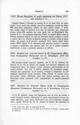 Выписка из донесения барона де Би к Генеральным Штатам Соединенных Нидерланд из С. Петербурга, 1717 года октября 11/22 // Нидерланд. государств. арх. в Гаге. Копия находится в Императ. академии наук.