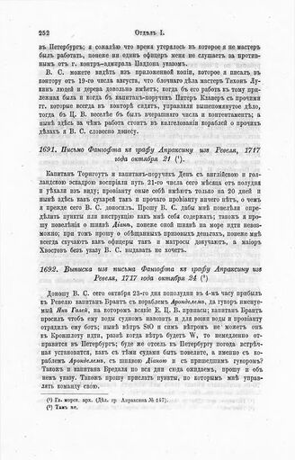 Выписка из письма Фангофта к графу Апраксину из Ревеля, 1717 года октября 24 // Гл. морск. арх. (Дел. гр Апраксина № 147).