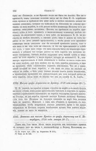 Выписка из письма Крюйса к графу Апраксину из С. Петербурга, 1718 года января 20 // Гл. морск. арх. (Дел. гр. Апраксина № 166).
