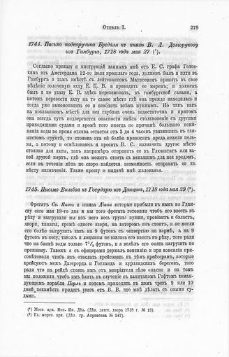 Письмо подпоручика Бредаля к князю В.Л. Долгорукову из Гамбурга, 1718 года мая 27 // Моск. арх. Мин. Ин. Дел. (Дел. датск. двора 1718 г. № 13).