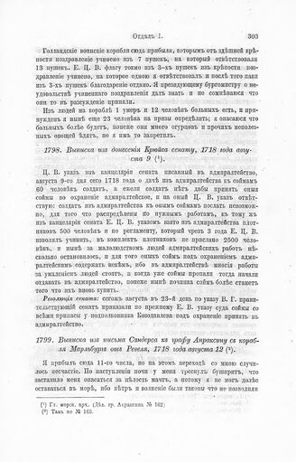 Выписка из донесения Крюйса сенату, 1718 года августа 9 // Гл. морск. арх. (Дел. гр. Апраксина № 102).