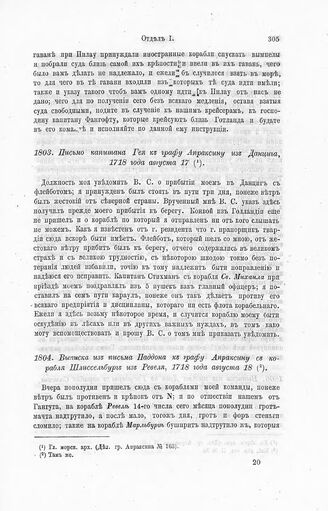 Выписка из письма Паддона к графу Апраксину с корабля Шлиссельбург из Ревеля, 1718 года августа 18 // Гл. морск. арх. (Дел. гр. Апраксина № 163).