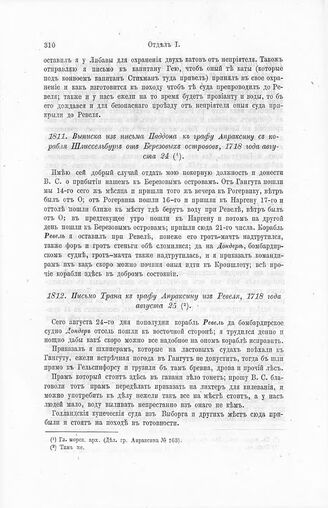 Выписка из письма Паддона к графу Апраксину с корабля Шлиссельбург от Березовых островов, 1718 года августа 24 // Гл. морск. арх. (Дел. гр. Апраксина № 163).