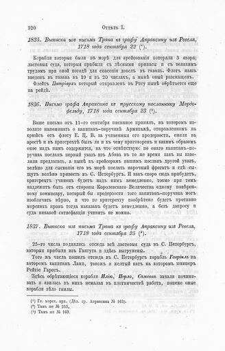 Выписка из письма Трана к графу Апраксину из Ревеля, 1718 года сентября 25 // Гл. морск. арх. (Дел. гр. Апраксина № 163).