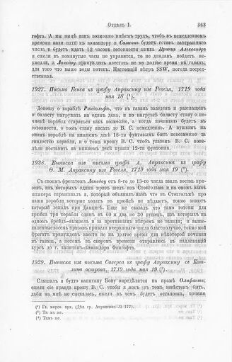Выписка из письма графа А. Апраксина к графу Ф.М. Апраксину из Ревеля, 1719 года мая 19 // Гл. морск. арх. (Дел. гр. Апраксина № 177).