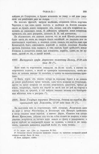 Инструкция графа Апраксина полковнику Бильсу, 1719 года июля 20 // Гл. морск. арх. (Дел. гр. Апраксина № 256).