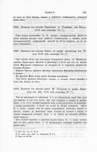 Выписка из письма Румянцова к Государю, из Ревеля, 1719 года сентября 28 // Каб. дел. отд. II. № 41.