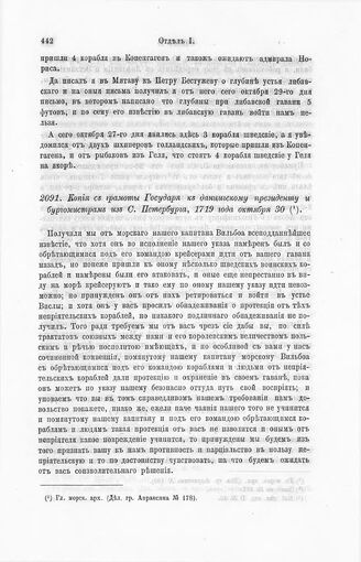 Копия с грамоты Государя к данцигскому президенту и бургомистрам из С. Петербурга, 1719 года октября 30 // Гл. морск. арх. (Дел. гр. Апраксина № 178).