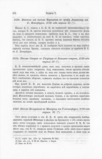 Выписка из письма Чернышева к графу Апраксину из С. Петербурга, 1720 года апреля 21 // Гл. морск. арх. (Дел. гр. Апраксина № 190).