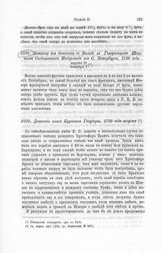 Выписка из донесения де Вильде к Генеральным Штатам Соединенных Нидерланд из С. Петербурга, 1720 года августа 29/сентября 9 // Нидерланд. государств. арх. в Гаге.