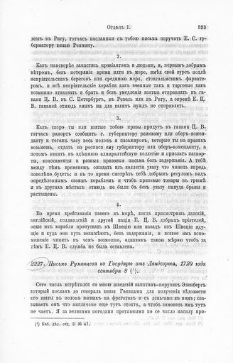 Письмо Румянцева к Государю от Ландсорта, 1720 года сентября 8 // Каб. дел. отд. II № 47.
