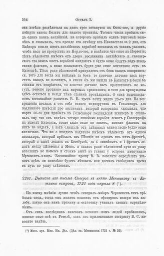 Выписка из письма Сиверса к князю Меншикову с Котлина острова, 1721 года апреля 8 // Моск. арх. Мин. Ин. Дел. (Дел. кн. Меншикова 1721 г. № 22).