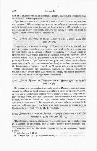 Выписка из письма Крюйса к графу Апраксину из С. Петербурга, 1721 года мая 29 // Гл. морск. арх. (Дел. гр. Апраксина № 207).