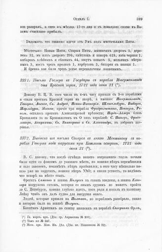 Выписка из письма Сиверса к князю Меншикову с корабля Гангут под парусами при Котлине острове, 1721 года июня 21